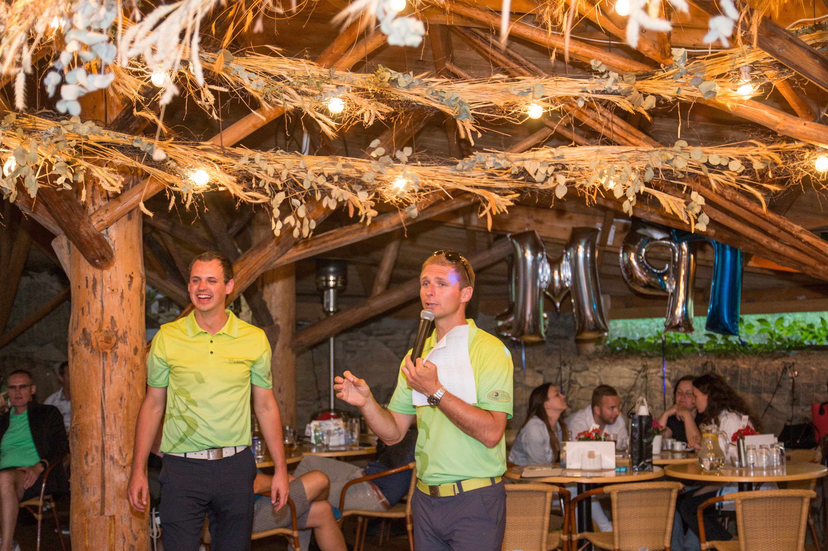 Po turnaji dočerpáte síly v restauraci u vynikající večeře a oroseného piva nebo sklenky výběrového vína. Po ní dojde na vyhlášení golfového turnaje a soutěží v golfové akademii. Následně se můžete radovat z cen a navazovat nové i utužovat stávající vztahy v rámci volné zábavy, ke které bude hrát živá hudba. Vyvrcholením večera pak bude vyhlášení tomboly, s následným večerním rautem.