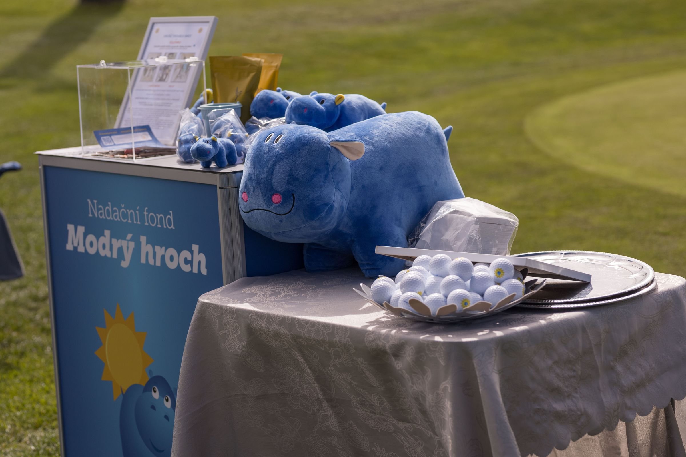 Jako každý rok, i letos v rámci golfového dne podpoříme nadační fond Modrý hroch, pomáhající dětem po těžkých úrazech nebo s těžkým fyzickým handicapem. Přispět může každý zakoupením speciálního golfového míčku, kdy 100 % výtěžku jde přímo na konto Modrého hrocha.